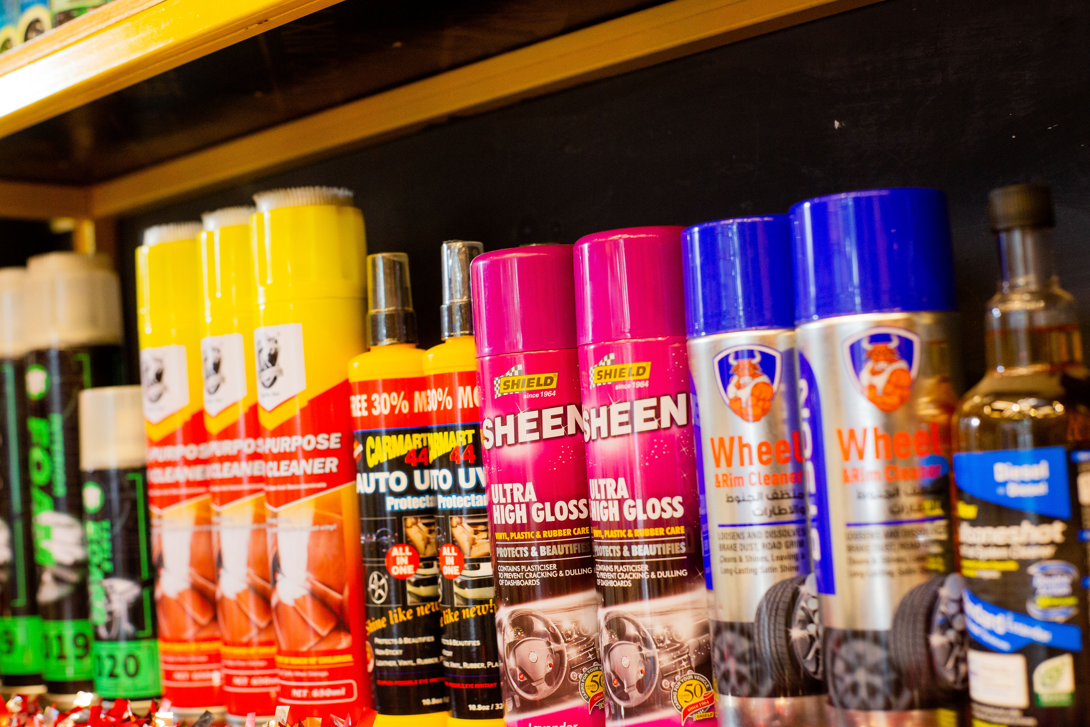 Premium cleaning sprays, dashboard protectors, wheel cleaners, and polish products to keep your car looking new.